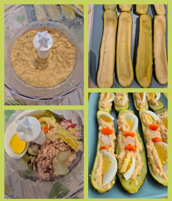 Nel frattempo inserire nel frullatore la polpa di zucchina tenuta da parte, i sottaceti (ad eccezione di qualcuno per la decorazione finale), i capperi, 1 uovo sodo, il tonno, un pizzico di Sale e Pepe.