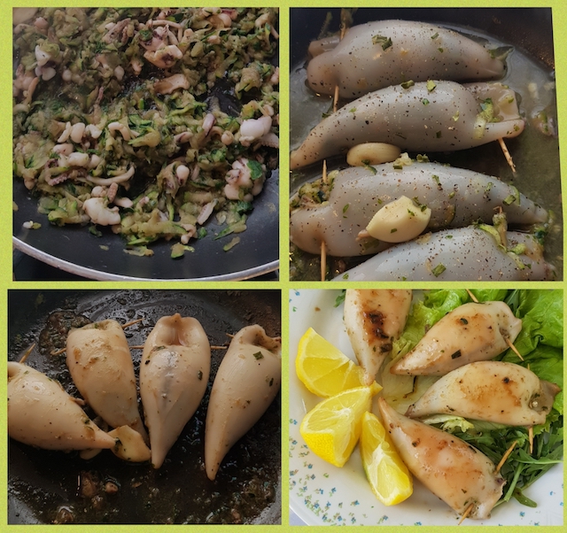 A questo punto suddividere il ripieno in 4 parti e riempire i calamari chiudendoli poi con uno stuzzicadenti per evitare che l'interno fuoriesca.