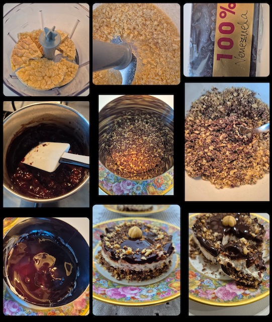 In un contenitore di vetro sciogliere a bagnomaria il cioccolato fondente, aggiungerlo alla galletta di lenticchie frullata e allo xilitolo di betulla*; amalgamare il tutto velocemente.