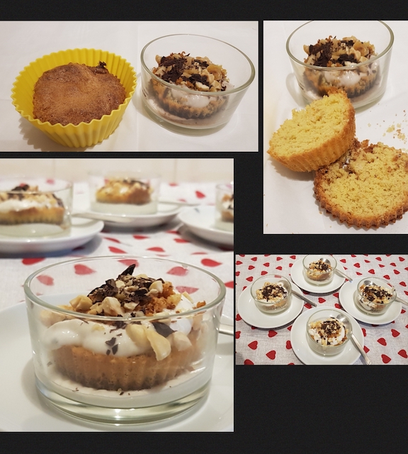 I Muffin usati per questo dessert derivano dalla ricetta della mia Tarta de Santiago “diet” e con le dosi di questo dolce ho ottenuto una "Tarta" un po' più piccola e 4 muffin. Le "Coppette Golose" si potranno realizzare anche con altri tipi di Muffin o altri tipi di dolci.