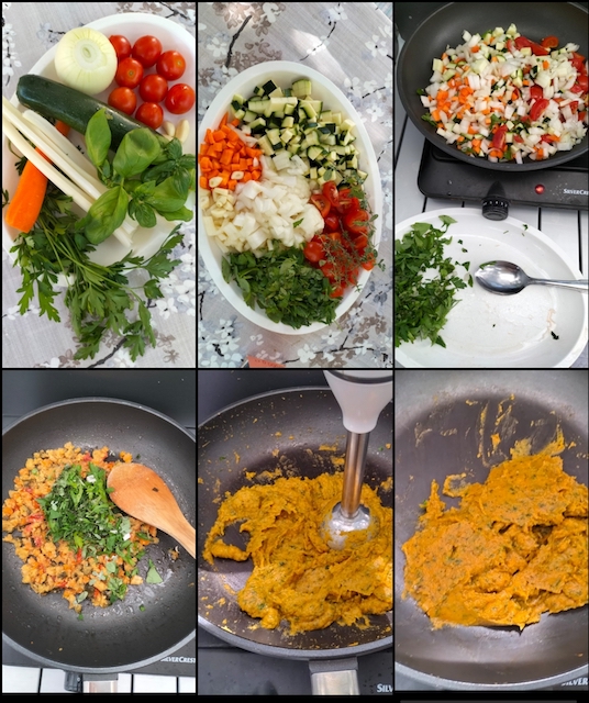Una volta cotte queste verdure frullarle con il mixer a immersione.