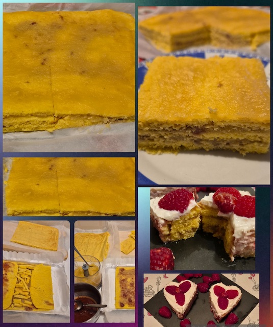 Trascorsi i primi 10 minuti monitorare la cottura in quanto la pasta biscotto deve essere cotta rimanendo morbida.Una volta pronto il Pan di Spagna, staccarlo con delicatezza dalla carta forno, tagliare gli strati della misura o della forma desiderata.