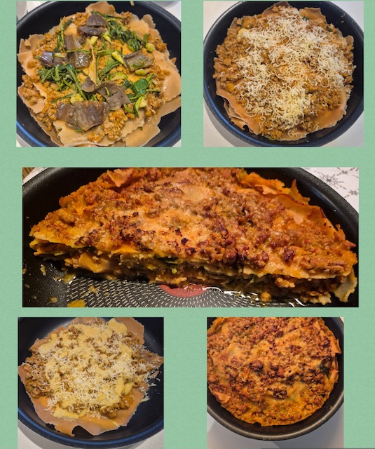 Per comporre il Pasticcio decidere se cuocerlo nel forno normale o nella friggitrice ad aria; in base a ciò scegliere la teglia più adatta (io ho scelto una padella con un bordo un po' alto di misura giusta per la mia friggitrice ad aria).
