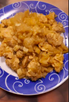 Quando il pollo è rosolato aggiungere la cipolla e farla appassire un po’, il cucchiaino di Mix di Spezie e le mele.