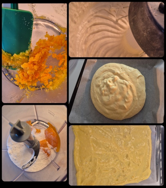 • Montare le uova intere con lo xilitolo* aromatizzato all'arancia fino a ottenere un composto chiaro e spumoso (saranno necessari almeno 15 minuti con le fruste elettriche).