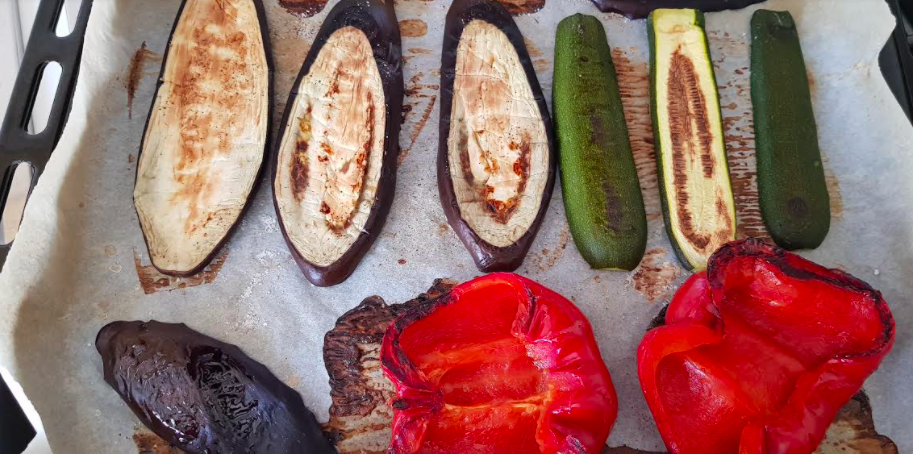 Posizionare le fette di verdura sulla leccarda e infornare alla temperatura di 200° per circa una mezz’ora avendo cura di controllare lo stato della cottura e provvedendo a rigirare di tanto in tanto.